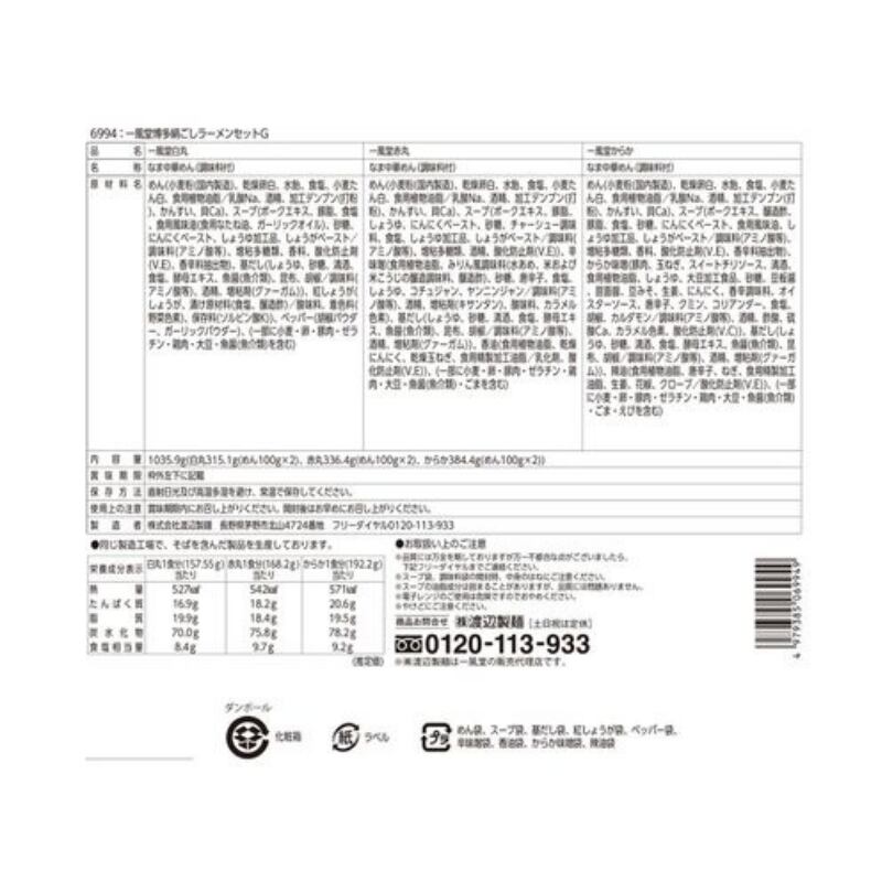 一風堂 博多絹ごしラーメンセットG(白丸2食、赤丸2食、からか2食) 豚骨ラーメン とんこつ