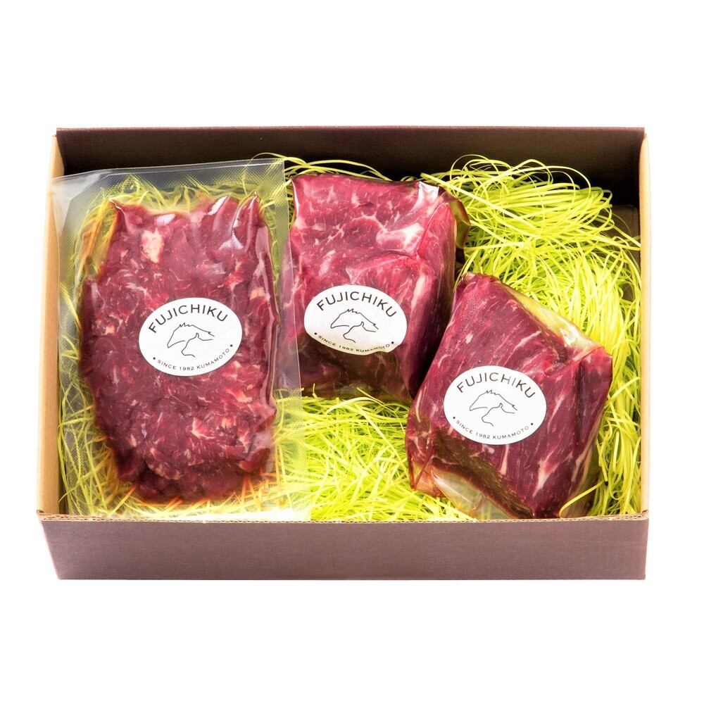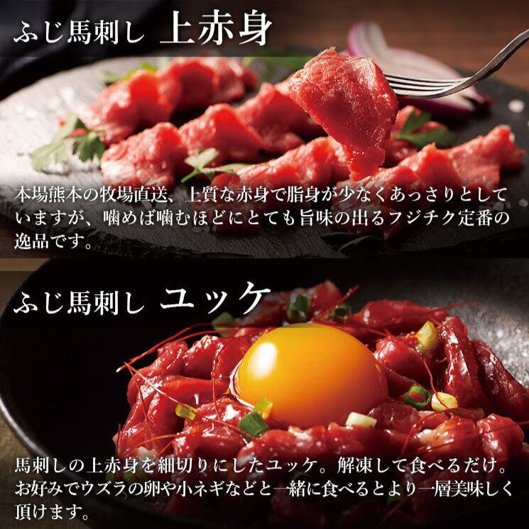 ふじ馬刺し 満喫セット( 上赤身 80g x 2、ユッケ50g x 1 ) 二重包装&ギフト包装 のし対応 フジチク