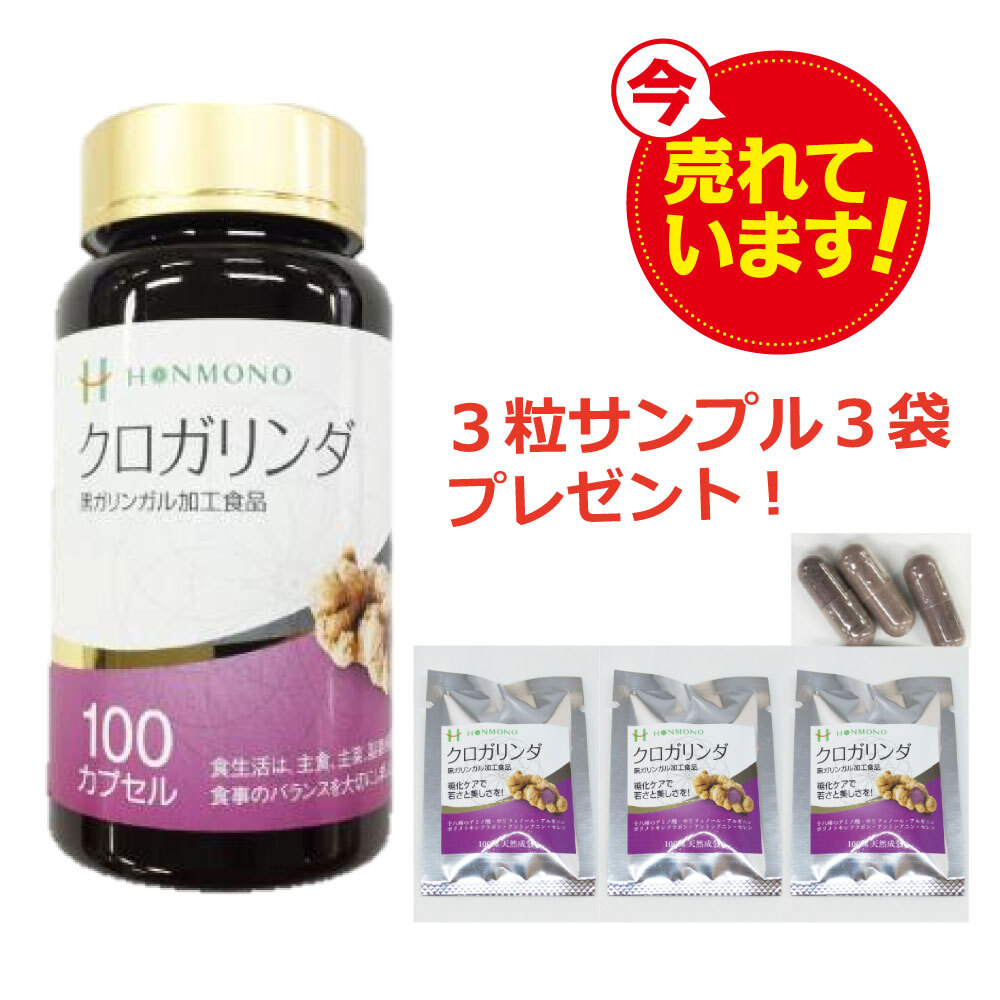 クロガリンダ(100カプセル)+ サンプル3粒入り3袋プレゼント 黒ガリンガルサプリメント 本物研究所
